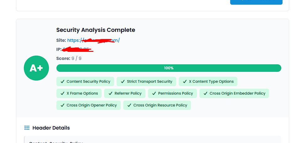 Thanks to [JaneMarcia] , my site’s Header Scanner now has an A+. Thanks again for your amazing creations! 😍
